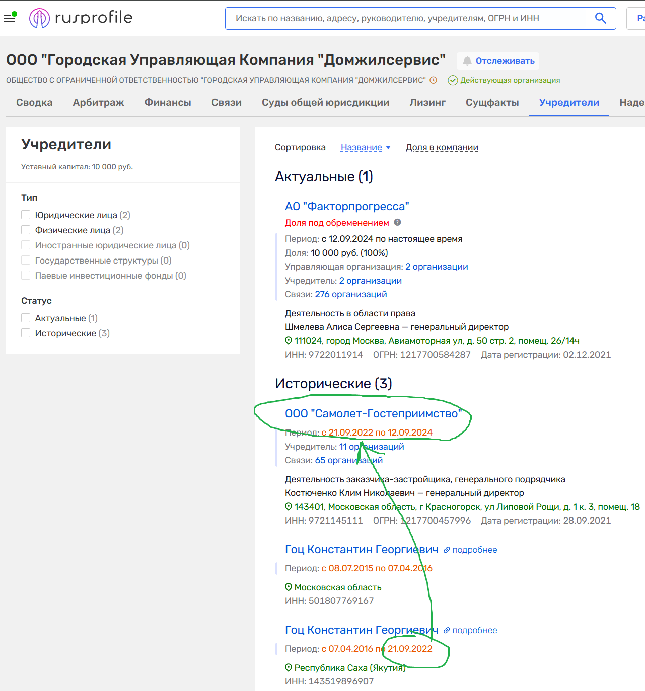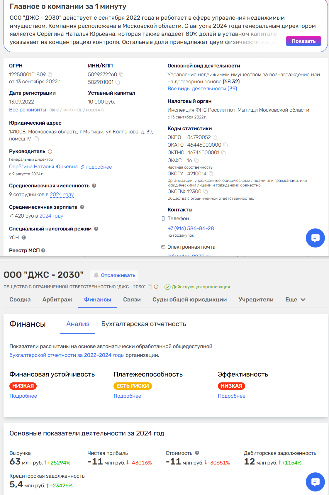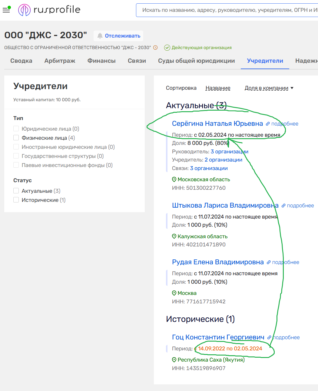 2. Профиль в системах типа Rusprofile / Спарк (платные версии).